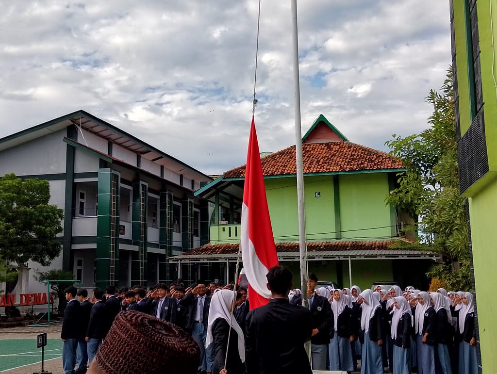 Demak, mandemak.sch.id – MAN Demak kembali melaksanakan upacara bendera rutin hari Senin dengan khidmat di halaman madrasah. Senin (13/4/26).
