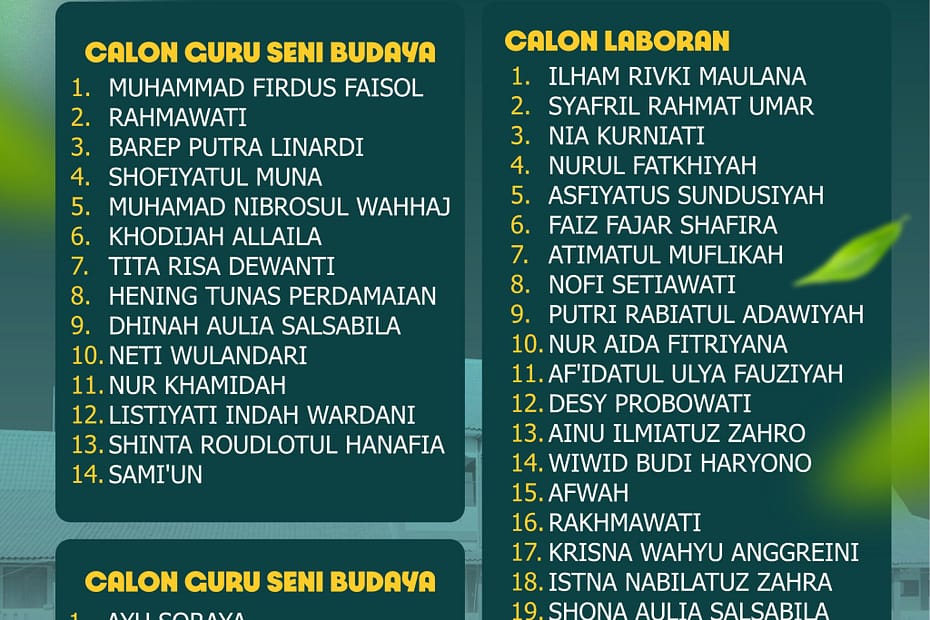 Berdasarkan Surat Keputusan Komite MAN Demak Nomor 39 /Komite MAN Dmk/KP.03/07/2025 tentang Hasil Seleksi Administrasi Penerimaan Guru Informatika, Guru Seni Budaya dan Laboran Madrasah Aliyah Negeri Demak Tahun 2025 Bagi… Selengkapnya »Hasil Seleksi Administrasi Penerimaan Guru dan Laboran MAN Demak