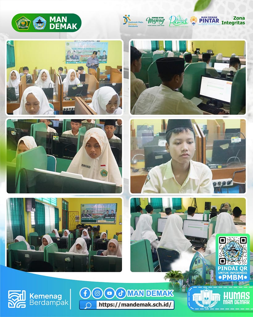 Kegiatan ini turut dipantau langsung oleh H. Abdul Rokhim, S.Ag., M.Pd. selaku Kasi Penmad Kankemenag Kabupaten Demak, bersama Matsalim, S.Pd. (Pengawas MAN IC Kota Pekalongan) dan Widayato, S.Pd. (Pengawas MAN 2 Kudus), serta didampingi Kepala Madrasah, H. Nur Kamsan, S.Ag., M.Pd.