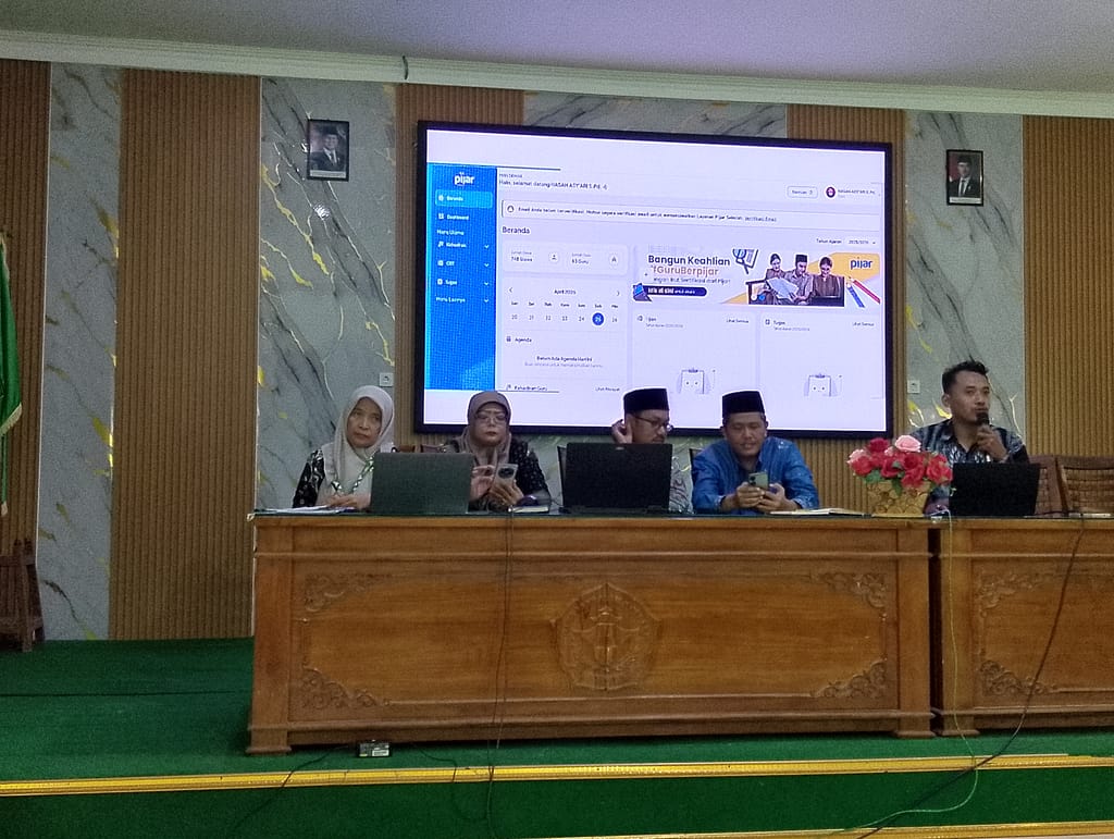 Agenda berikutnya adalah sosialisasi aplikasi PIJAR yang disampaikan oleh Wakil Kepala Madrasah bidang kurikulum, Suprojo, S.Pd. Ia menjelaskan bahwa pada tahun ajaran baru mendatang, aplikasi PIJAR akan mulai diterapkan guna mendukung tertib administrasi pembelajaran.