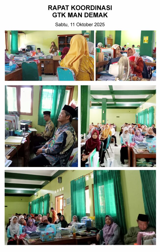 Demak, mandemak.sch.id – Madrasah Aliyah Negeri (MAN) Demak menyelenggarakan rapat kemadrasahan yang dihadiri oleh seluruh dewan guru dan staf di ruang guru Sabtu (11/10/25).