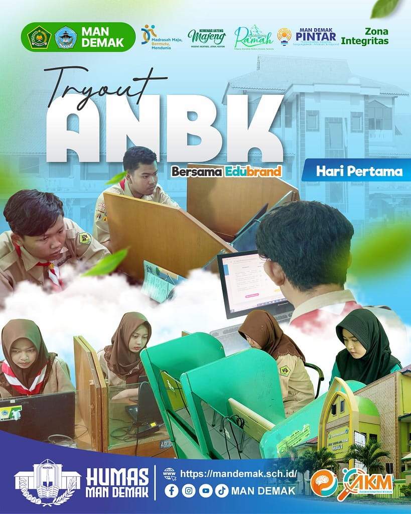 Demak, mandemak.sch.id – Madrasah Aliyah Negeri (MAN) Demak hari ini menggelar Tryout Akbar bekerja sama dengan Edubrand. Kegiatan ini merupakan bagian dari program persiapan intensif bagi siswa-siswi kelas XI MAN Demak dalam menghadapi Asesmen Nasional Berbasis Komputer (ANBK).