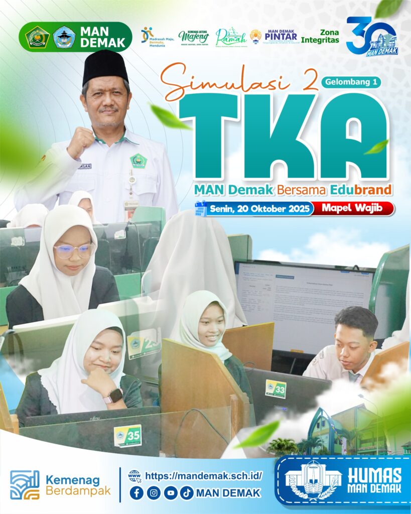 Demak, mandemak.sch.id – Dalam rangka memantapkan persiapan siswa menghadapi Seleksi Nasional Berdasarkan Tes (SNBT), Madrasah Aliyah Negeri (MAN) Demak kembali menyelenggarakan Tryout Tes Kemampuan Akademik (TKA) bekerja sama dengan Edubrand Senin (20/10/2025).