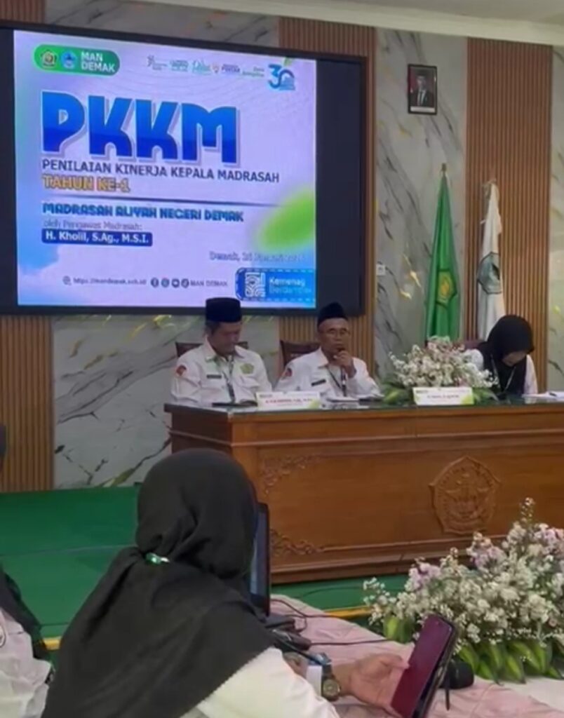 Kegiatan penilaian berlangsung di aula MAN Demak dan bertujuan untuk mengevaluasi kinerja kepala madrasah dalam rangka peningkatan mutu manajemen dan layanan pendidikan.