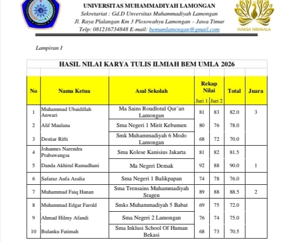 Keberhasilan ini menjadi bukti kerja keras siswa sekaligus hasil dari bimbingan intensif para guru pembina. Rasa syukur dan terima kasih disampaikan kepada seluruh pihak yang telah mendukung proses riset hingga kompetisi berlangsung.